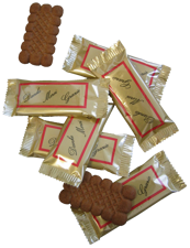 Unsere beliebte Kaffeebeilage, dass Caramel-Biskuit "Merci, Grazie, Danke".